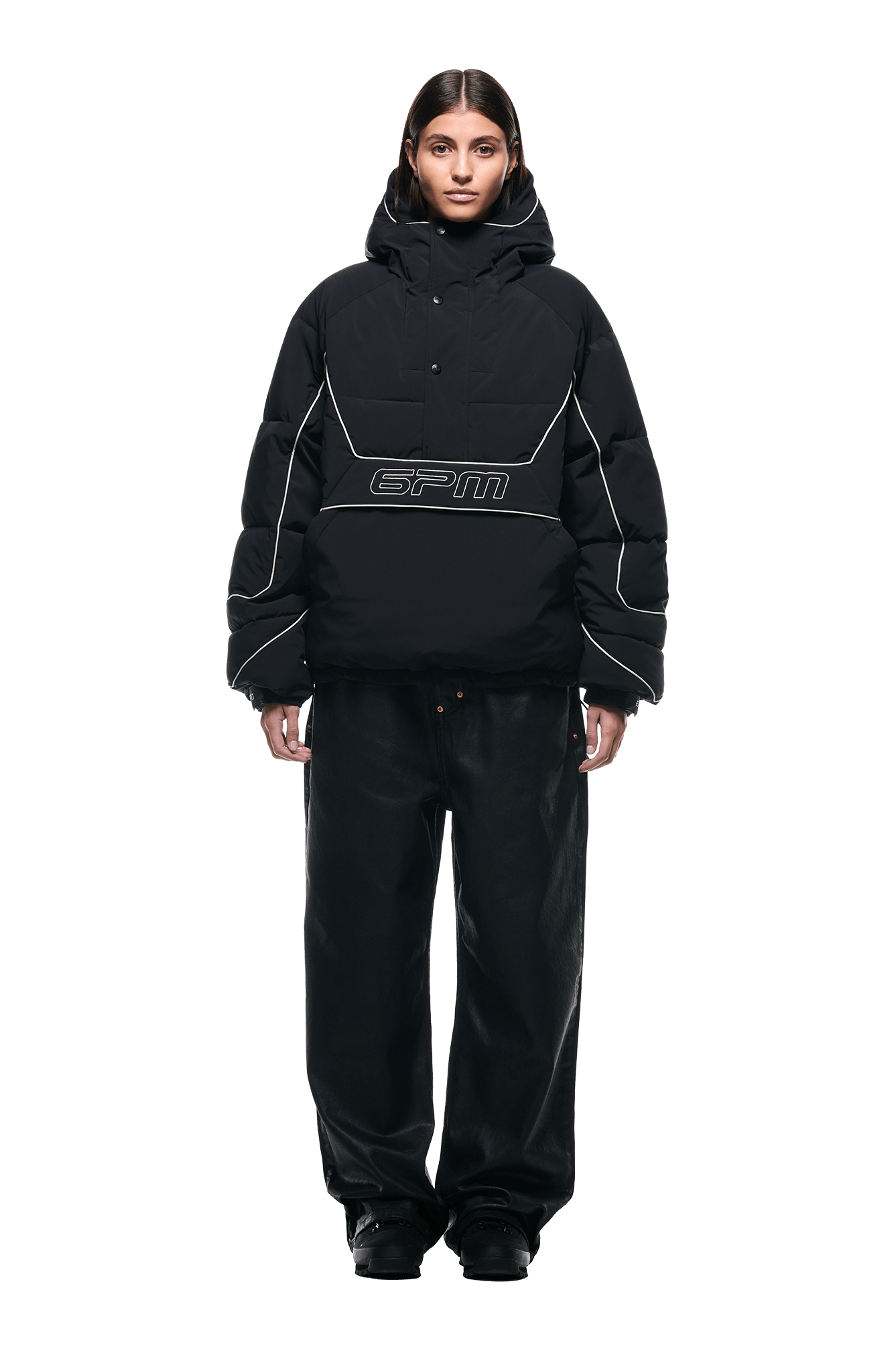 HALF ZIP PULLOVER PUFFER JACKET BLACK