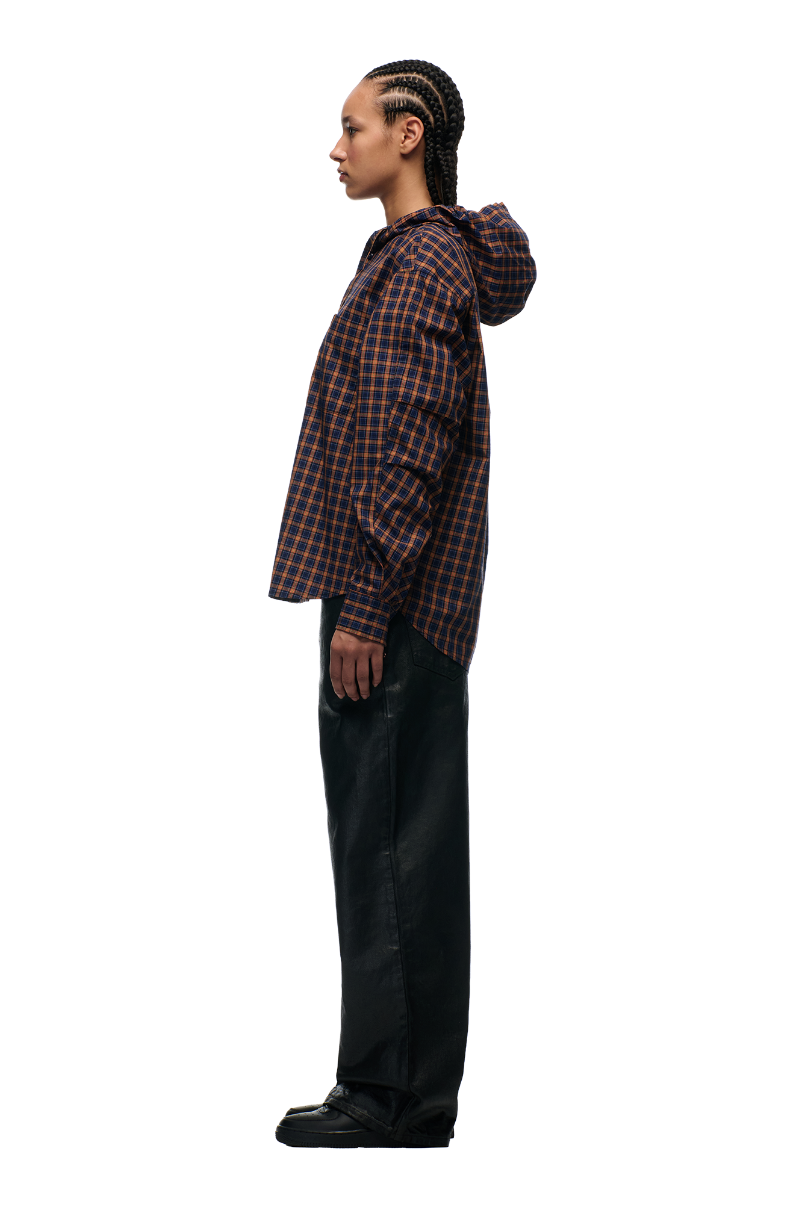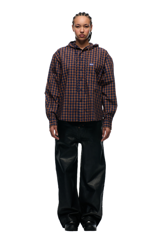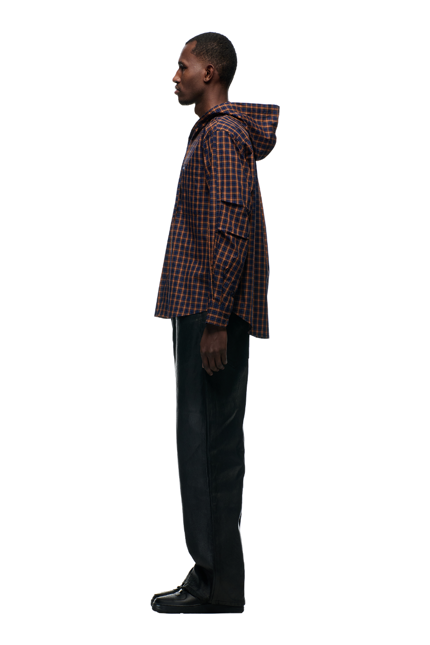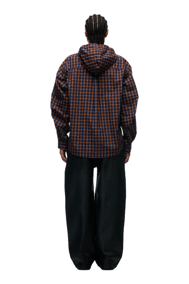HOODED DRESS SHIRT BLUE/ORANGE/BLACK