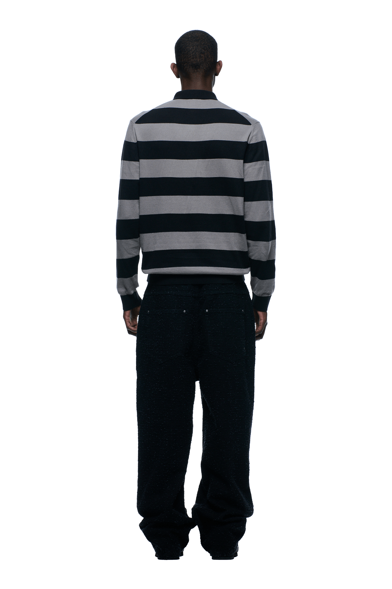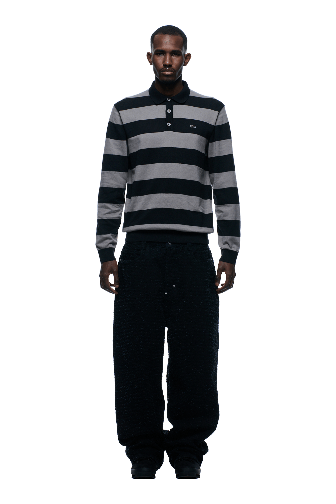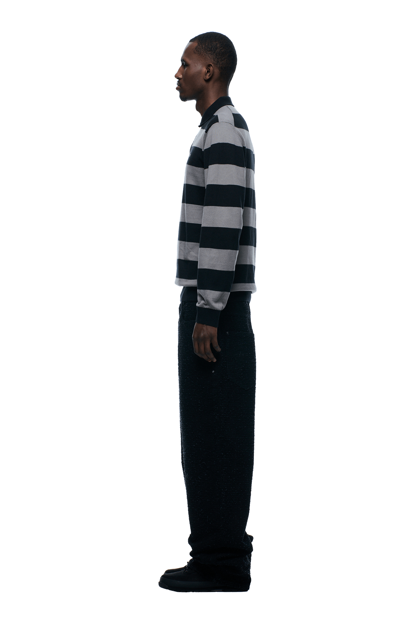 LS STRIPED POLO BLACK
