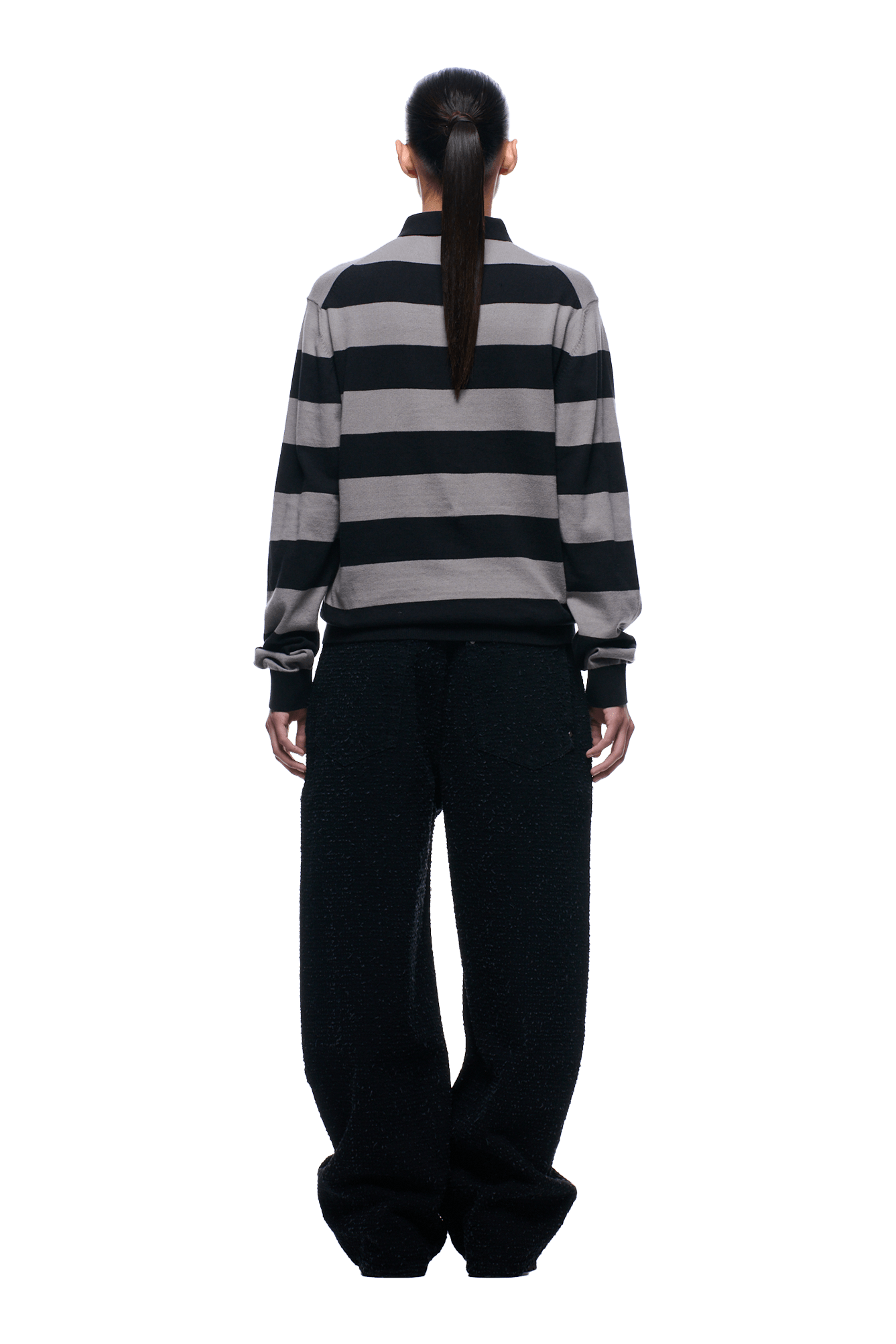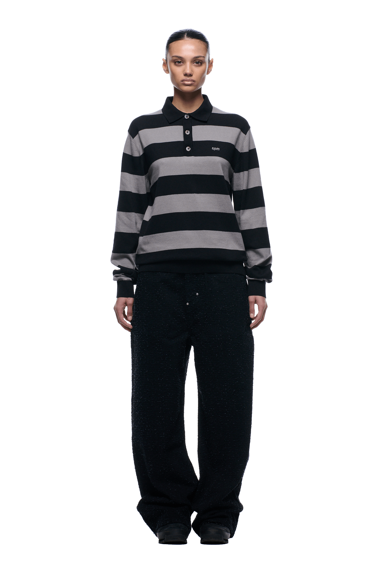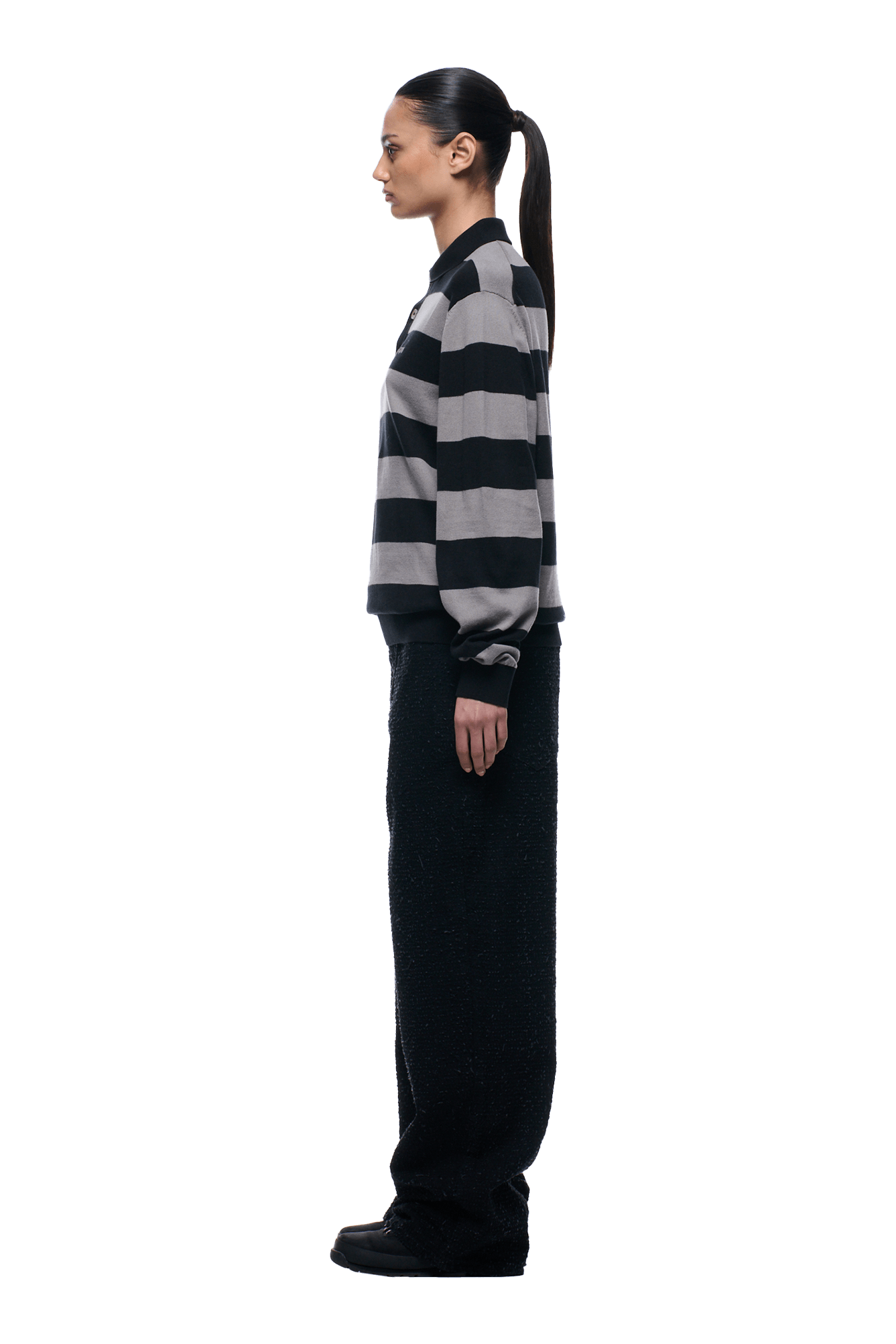 LS STRIPED POLO BLACK