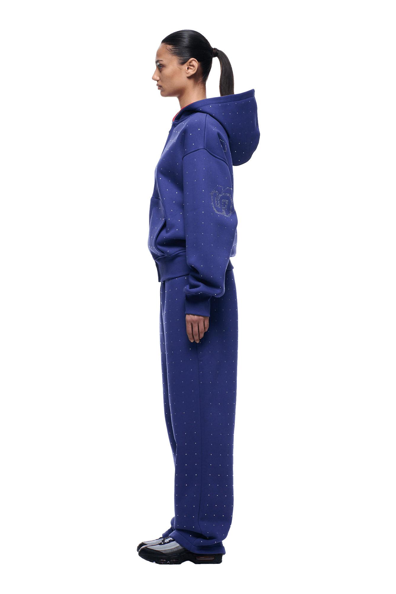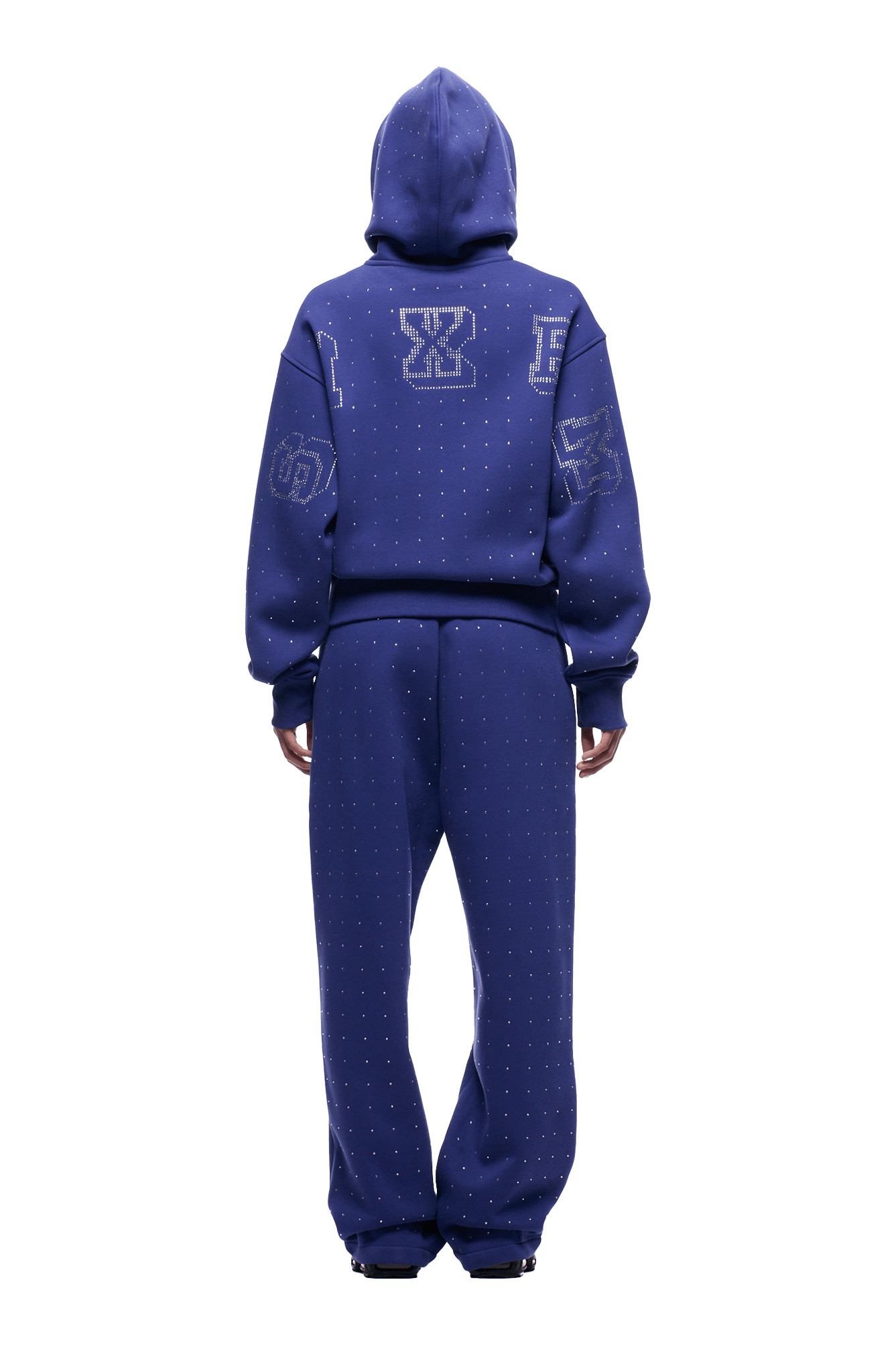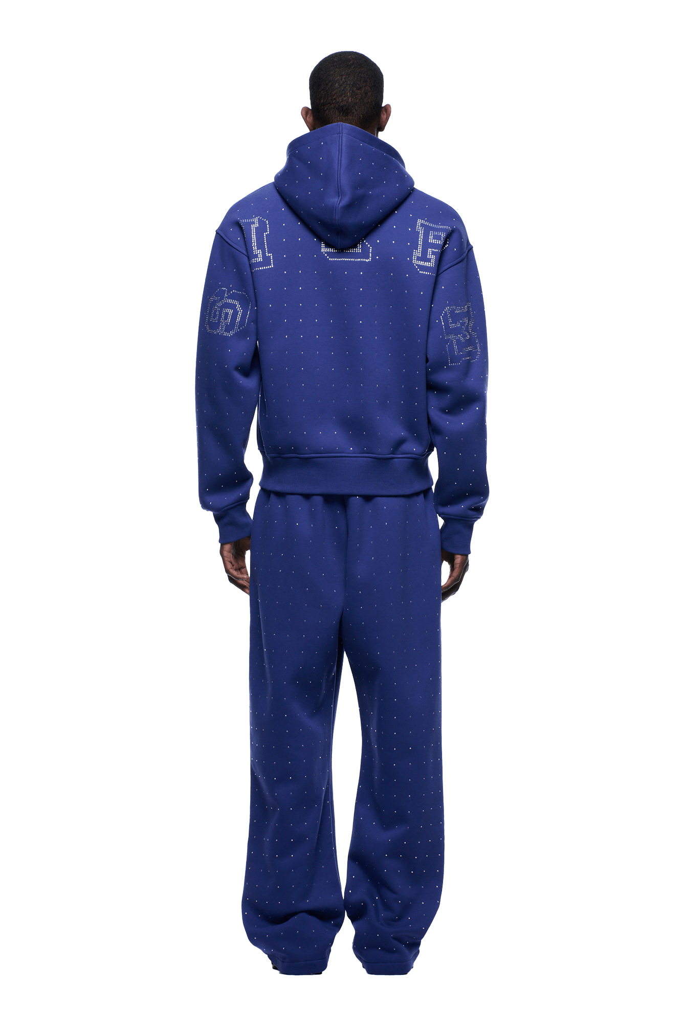 RHINESTONE LETTER ZIP HOODIE BLUE
