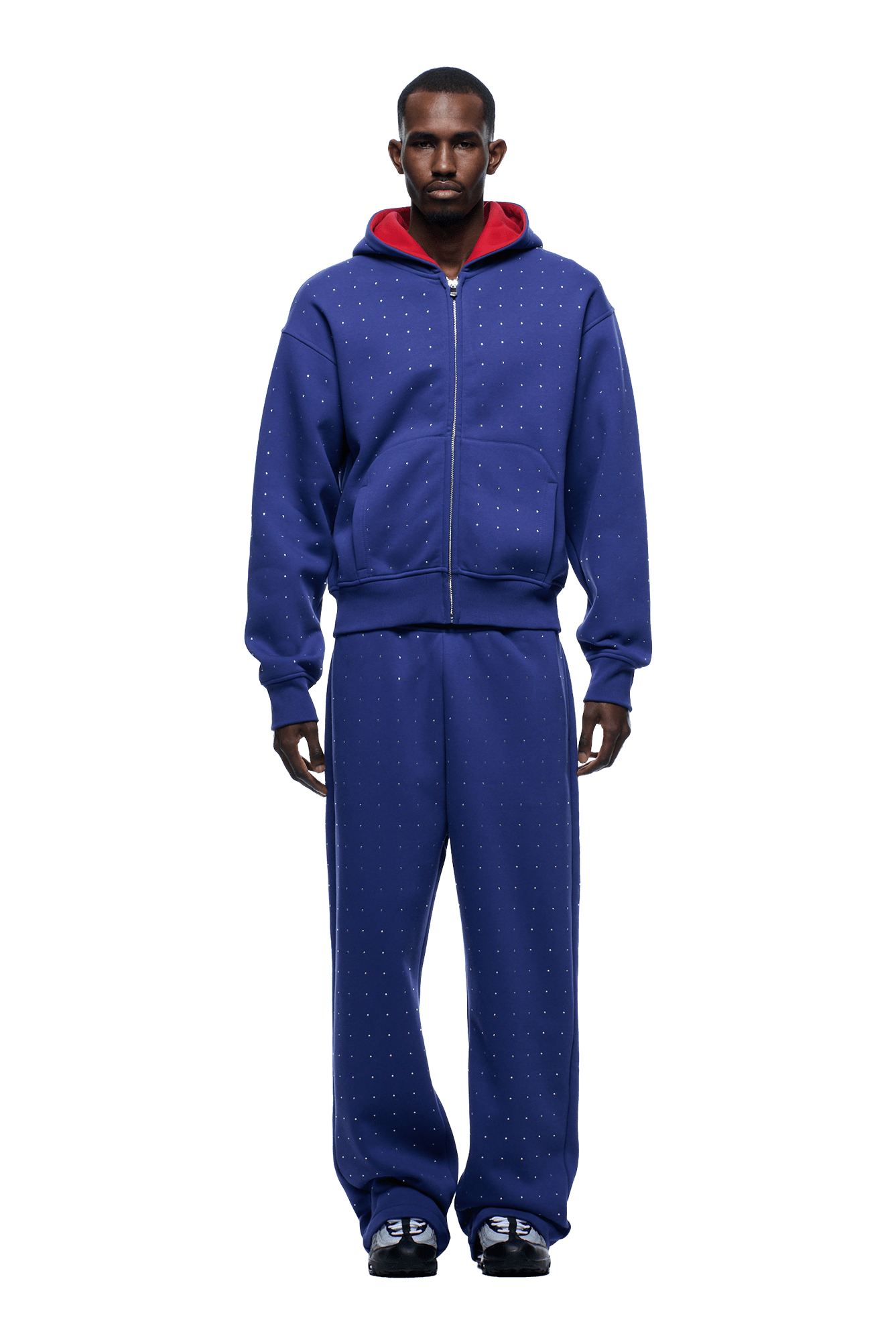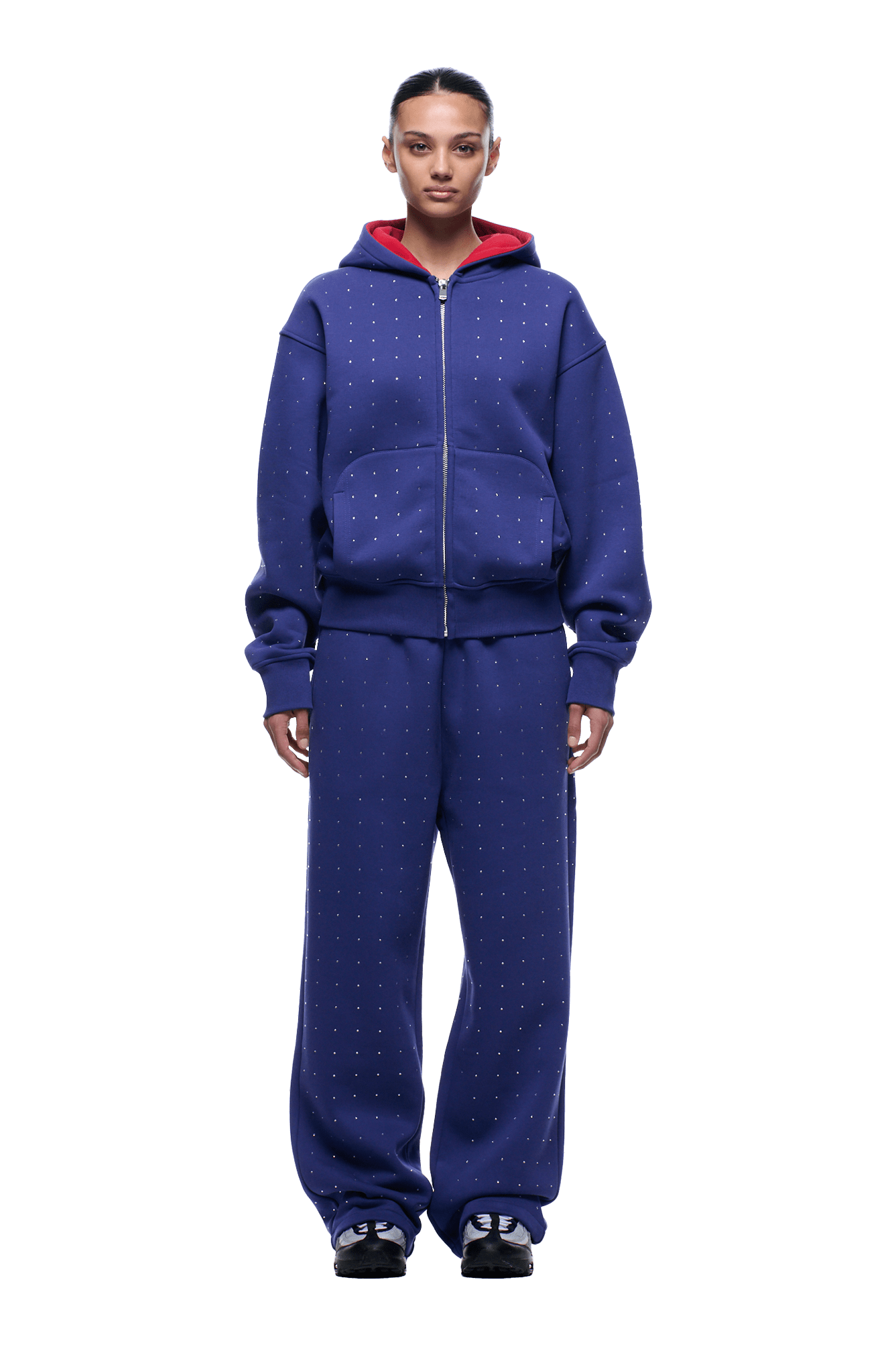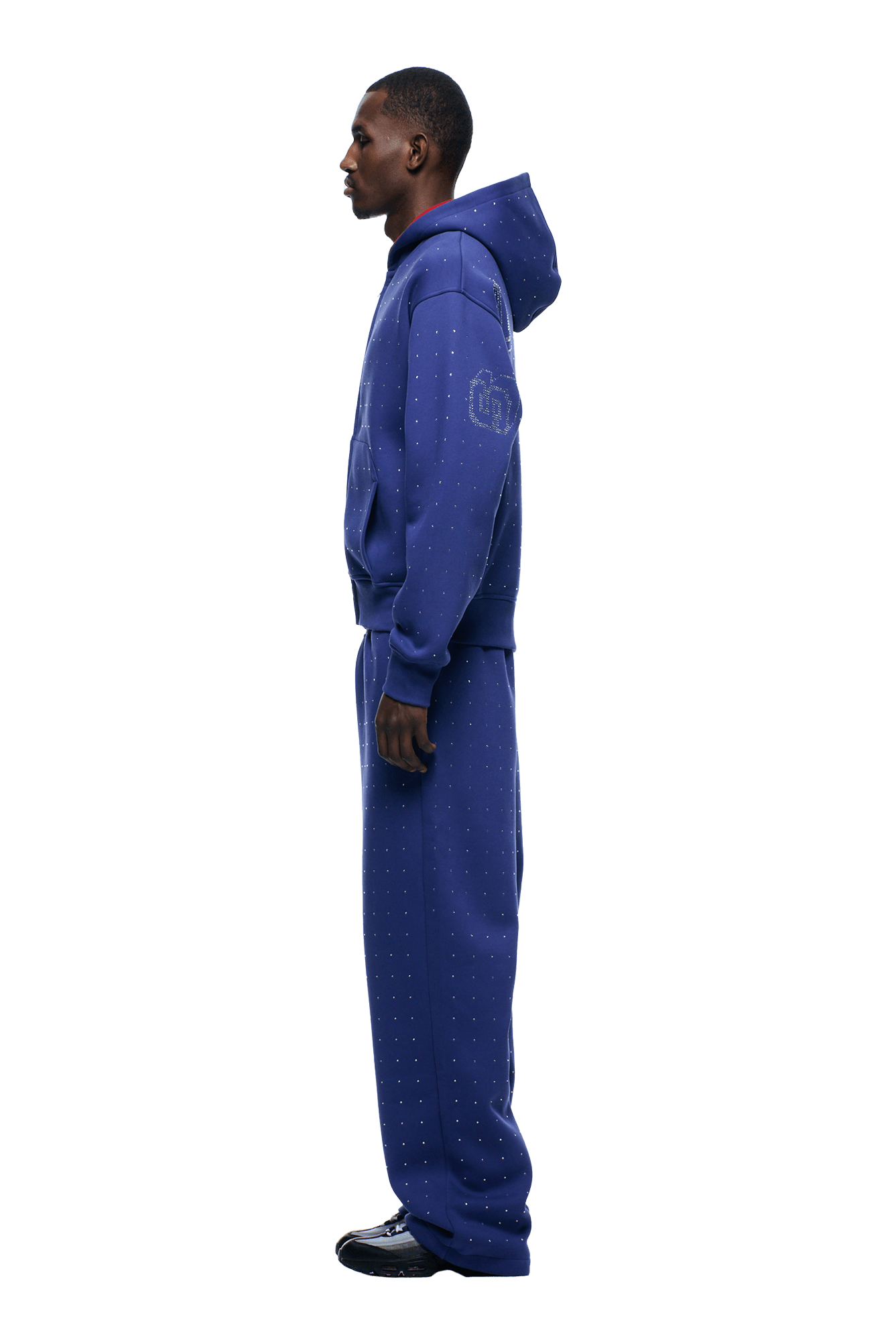 RHINESTONE LETTER ZIP HOODIE BLUE
