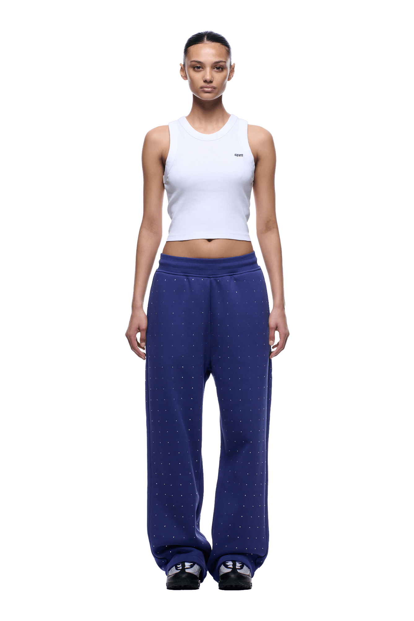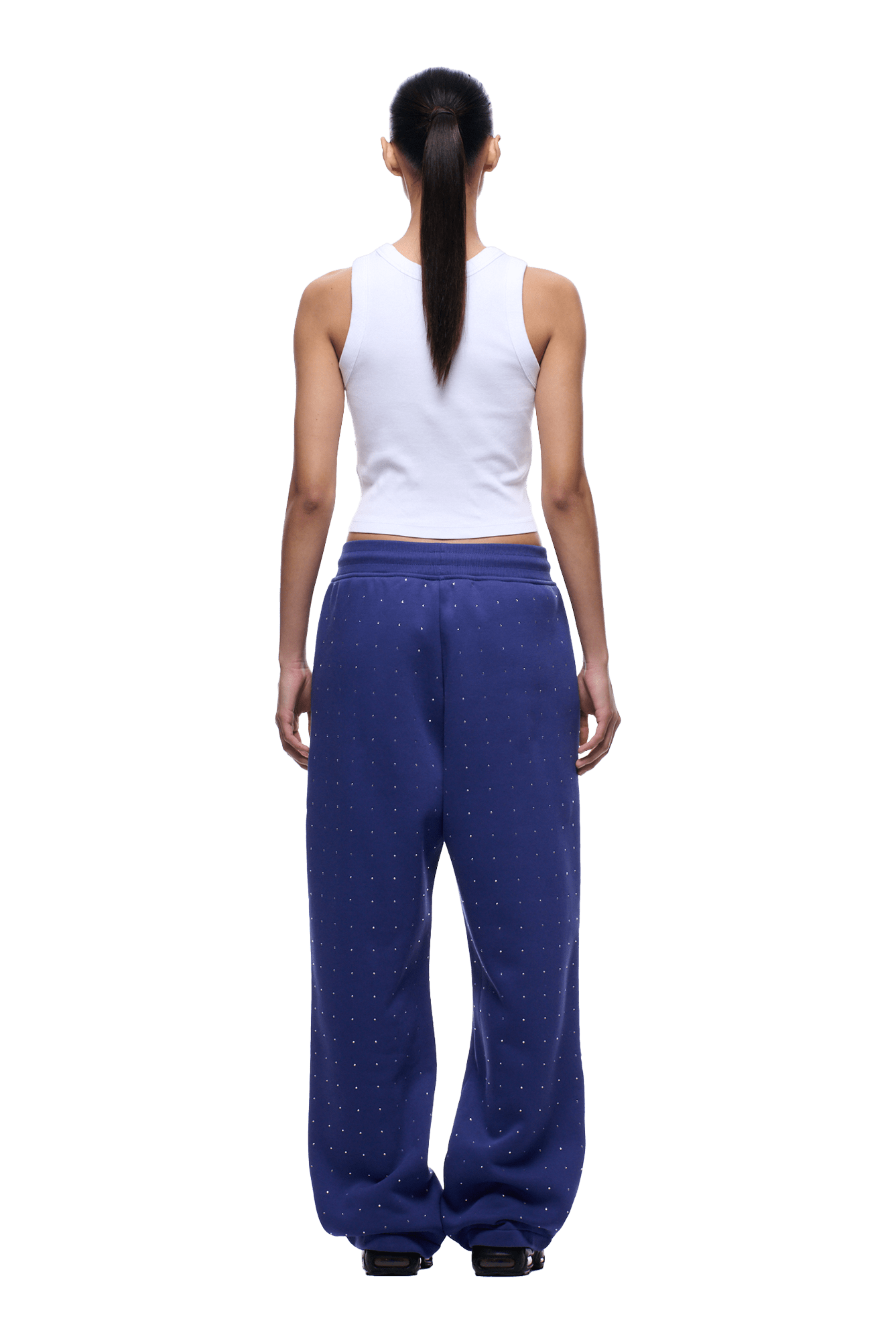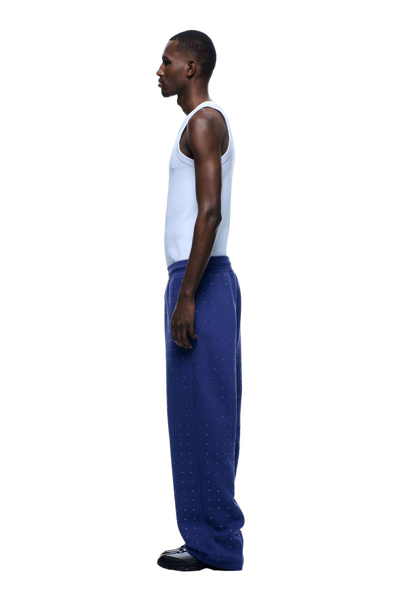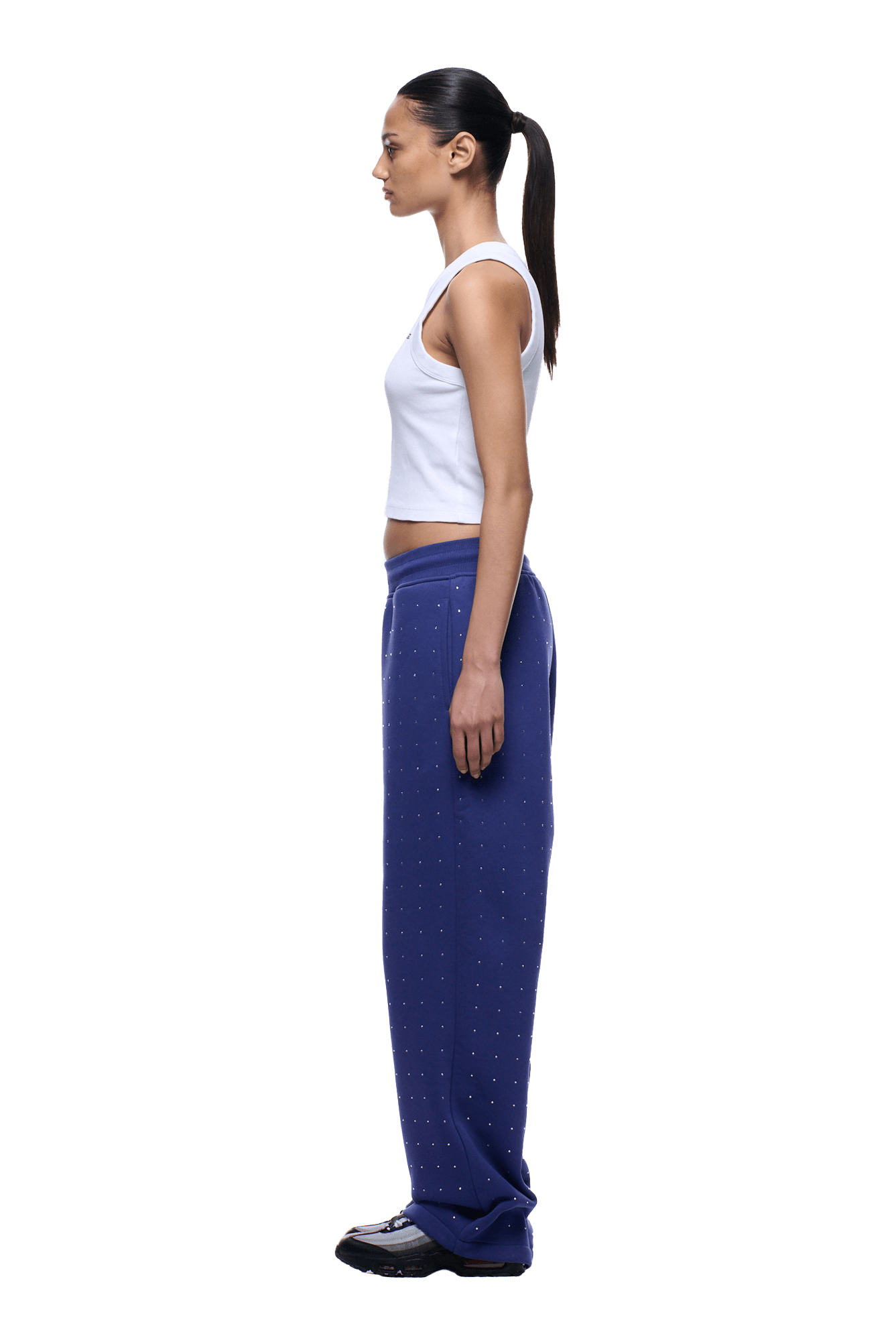 RHINESTONE OPEN LEG JOGGER BLUE