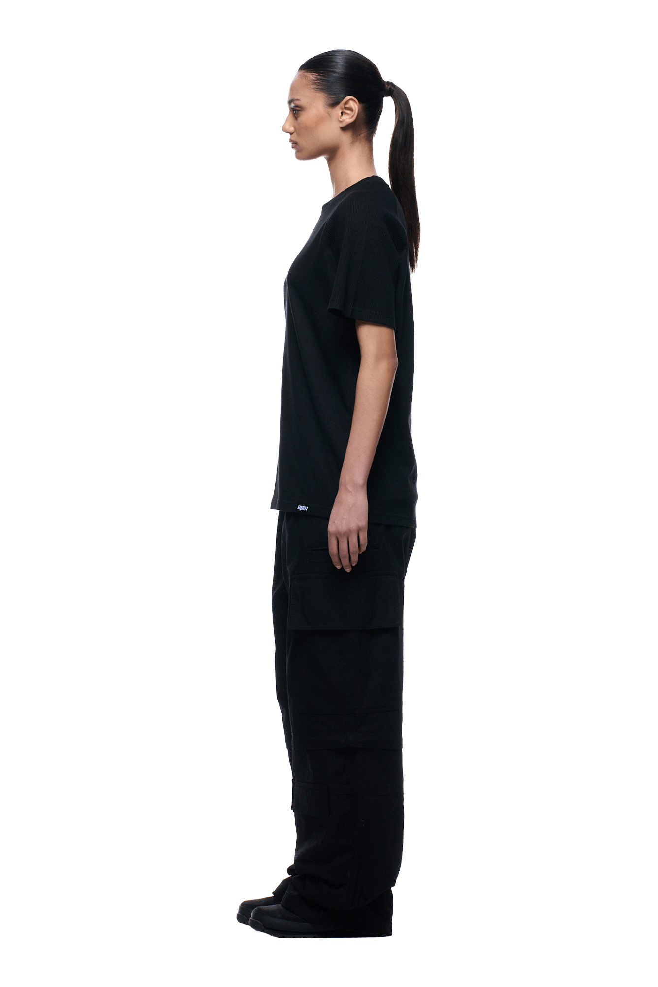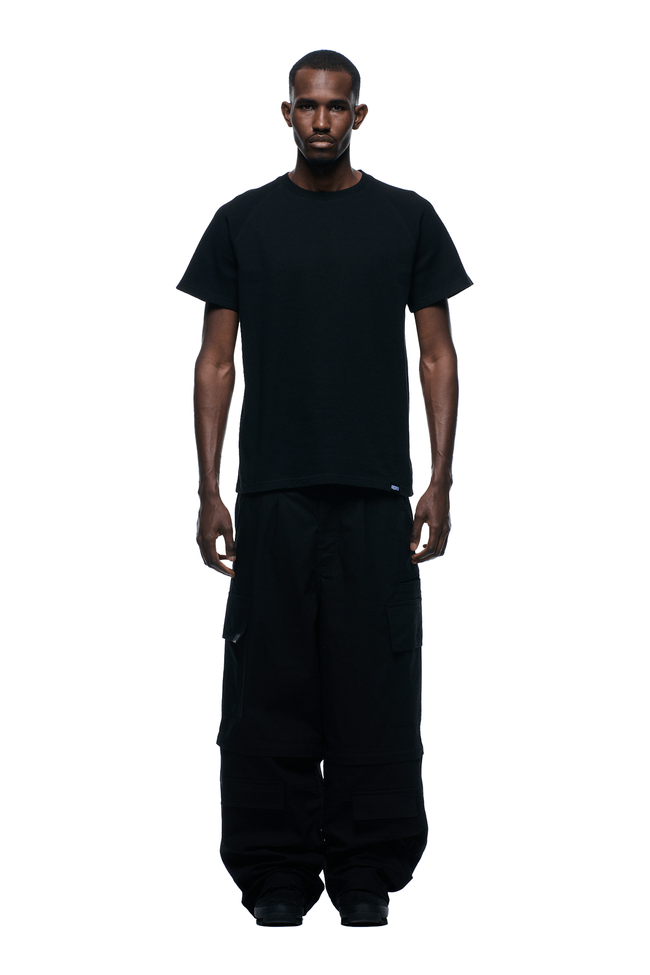 WAFFLE SLEEVE RAGLAN TEE BLACK